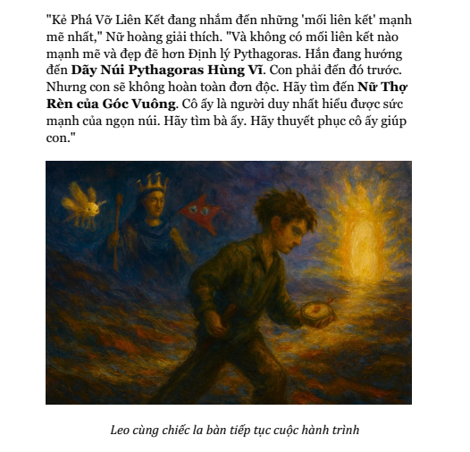 Trong tập 3 này, Leo sẽ phải đối mặt với Kẻ Phá Vỡ Liên Kết, một kẻ thù không muốn tạo ra sự hỗn loạn, mà muốn phá vỡ chính những mối quan hệ đã tạo nên vẻ đẹp của toán học. Và lần này, Leo sẽ không có những người bạn đồng hành quen thuộc. Cậu sẽ phải tự mình kết giao với những người bạn mới: một nữ thợ rèn chỉ tin vào những gì đo đạc được, và một tinh linh chỉ nhìn thế giới qua lăng kính của các mối quan hệ.